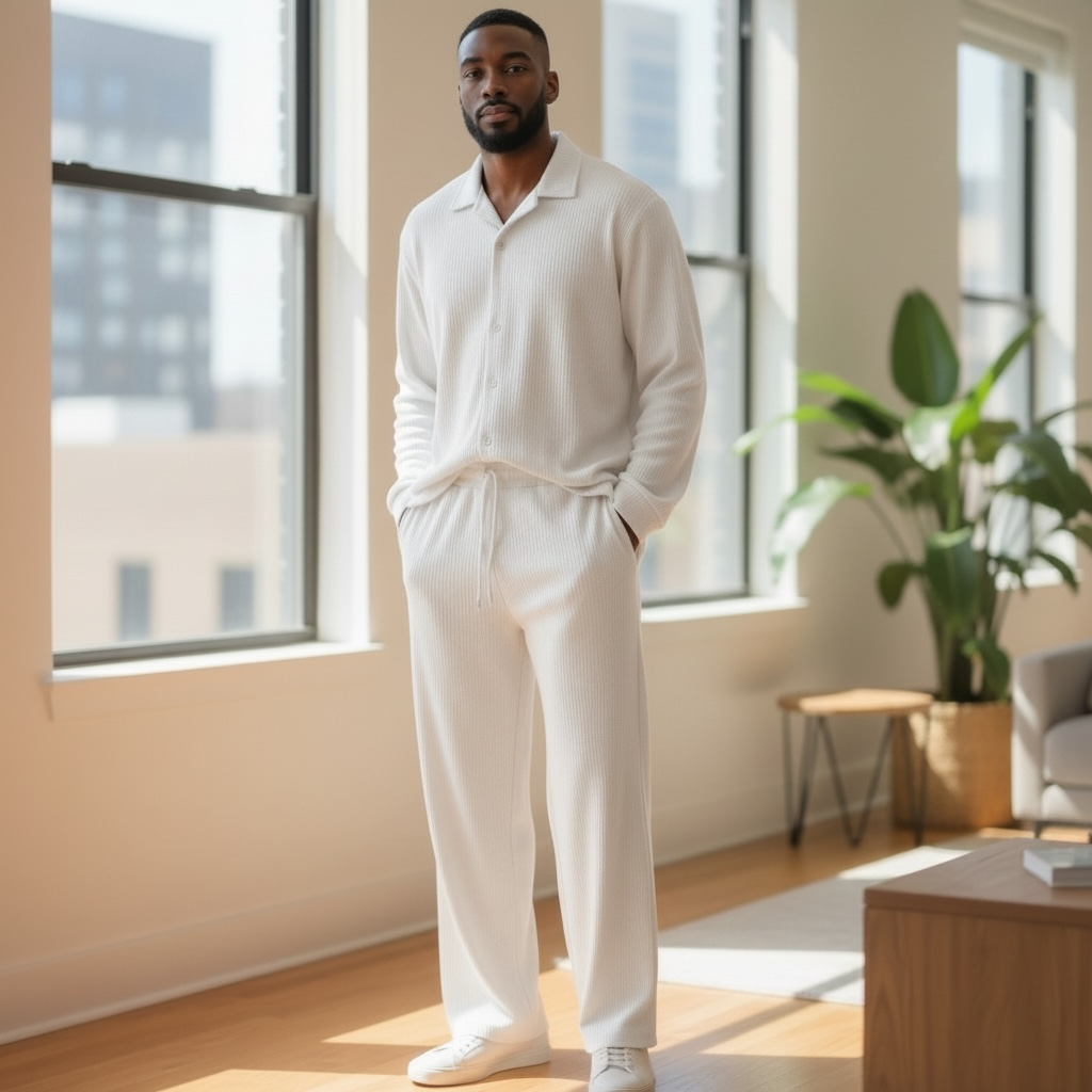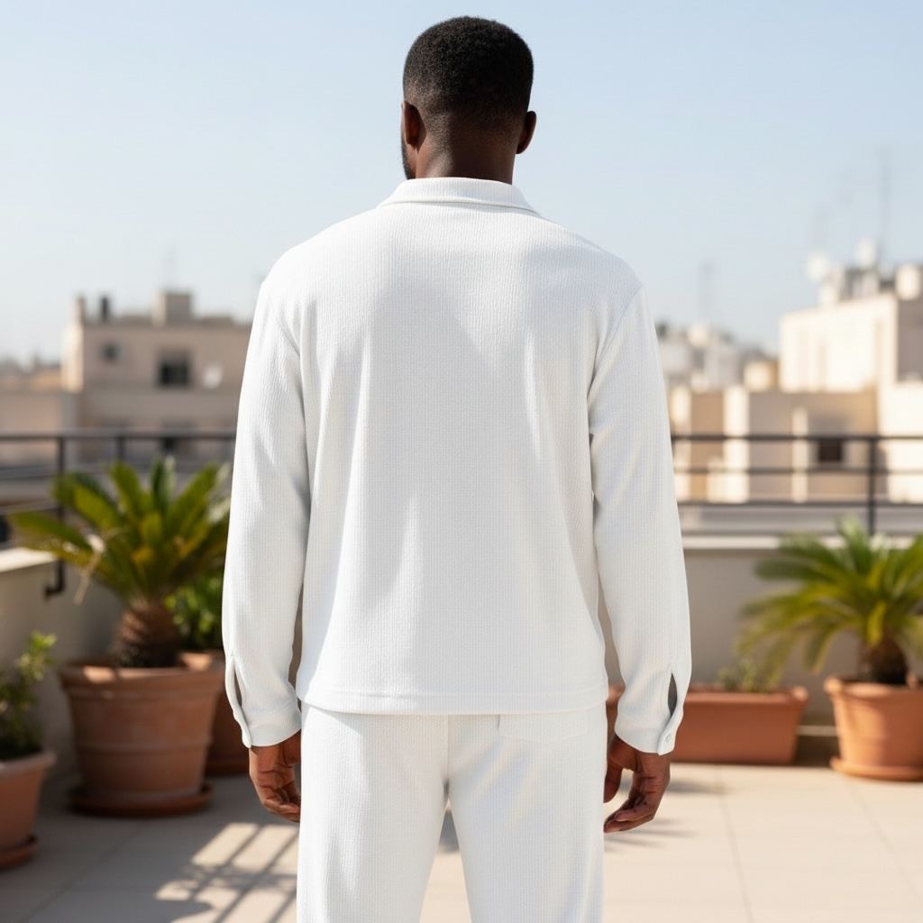 Upgrade your everyday comfort with this modern unisex co-ord set, featuring a long-sleeve button-up top and matching trousers. Designed with a relaxed silhouette and minimalist style, this set is perfect for home wear, travel, casual outings, or smart-casual styling.